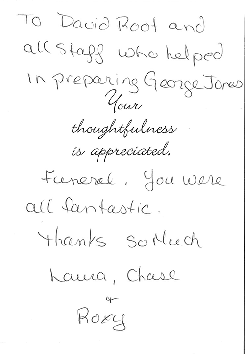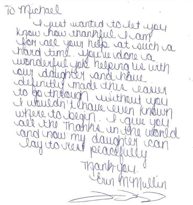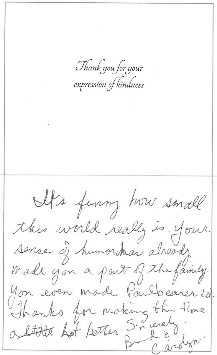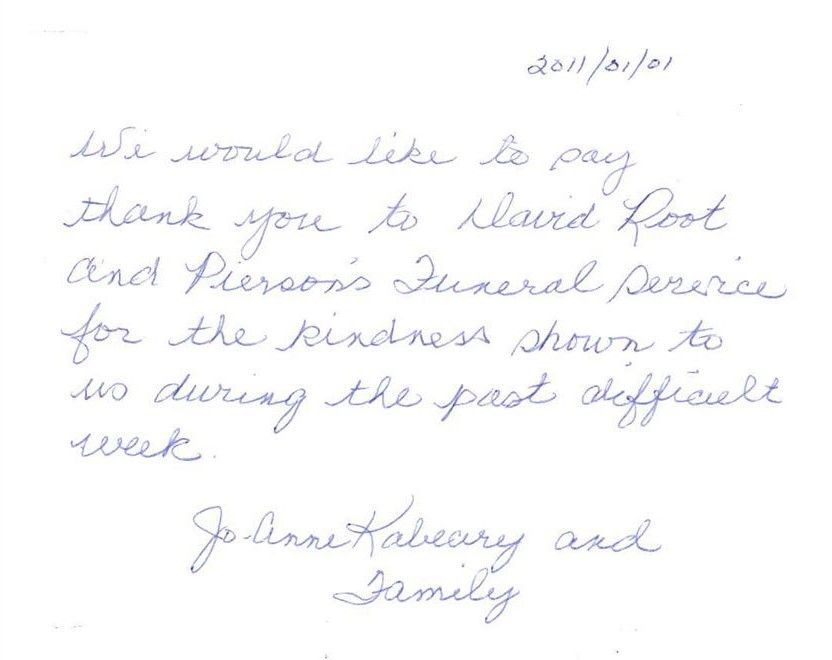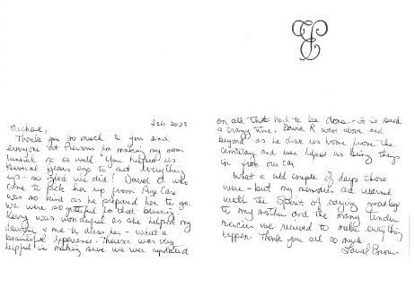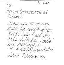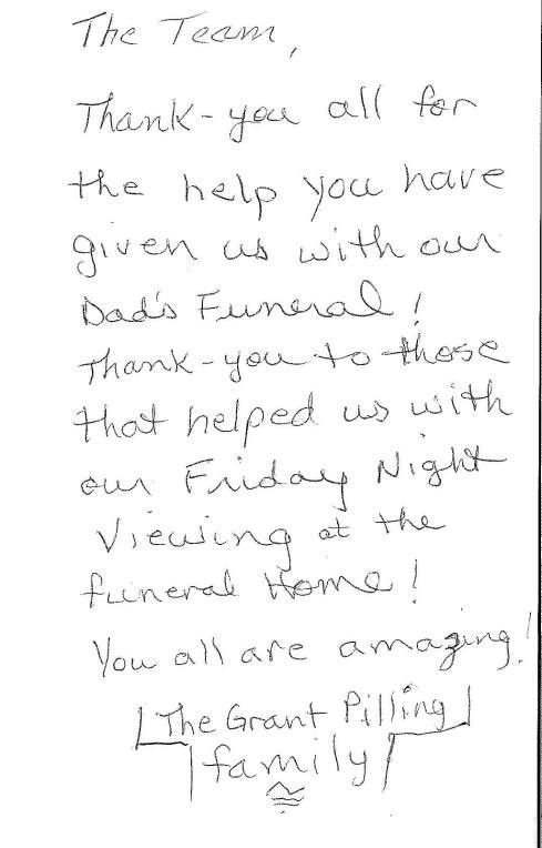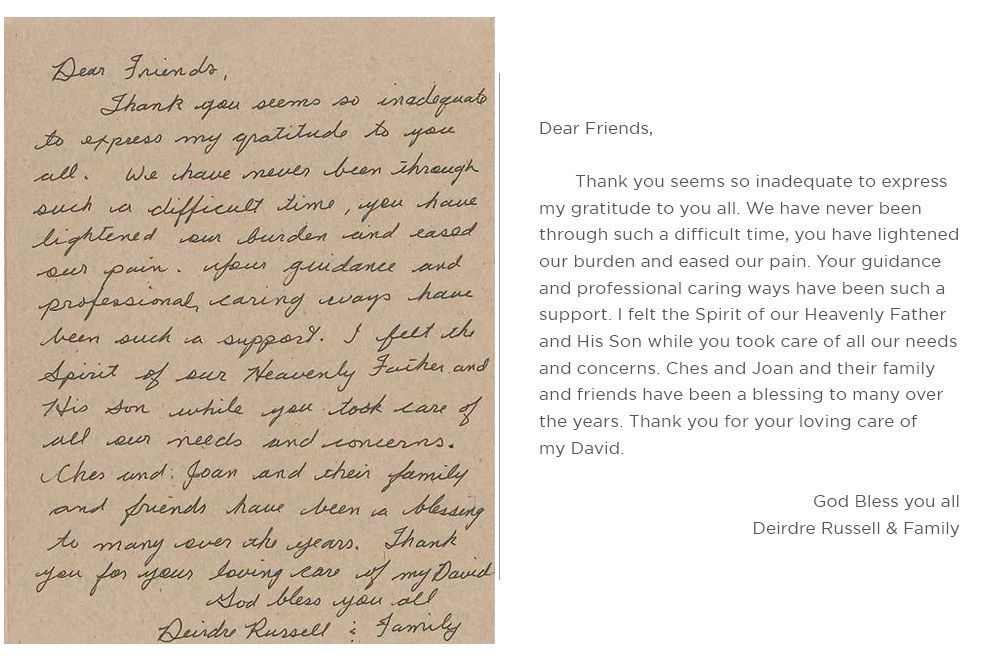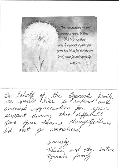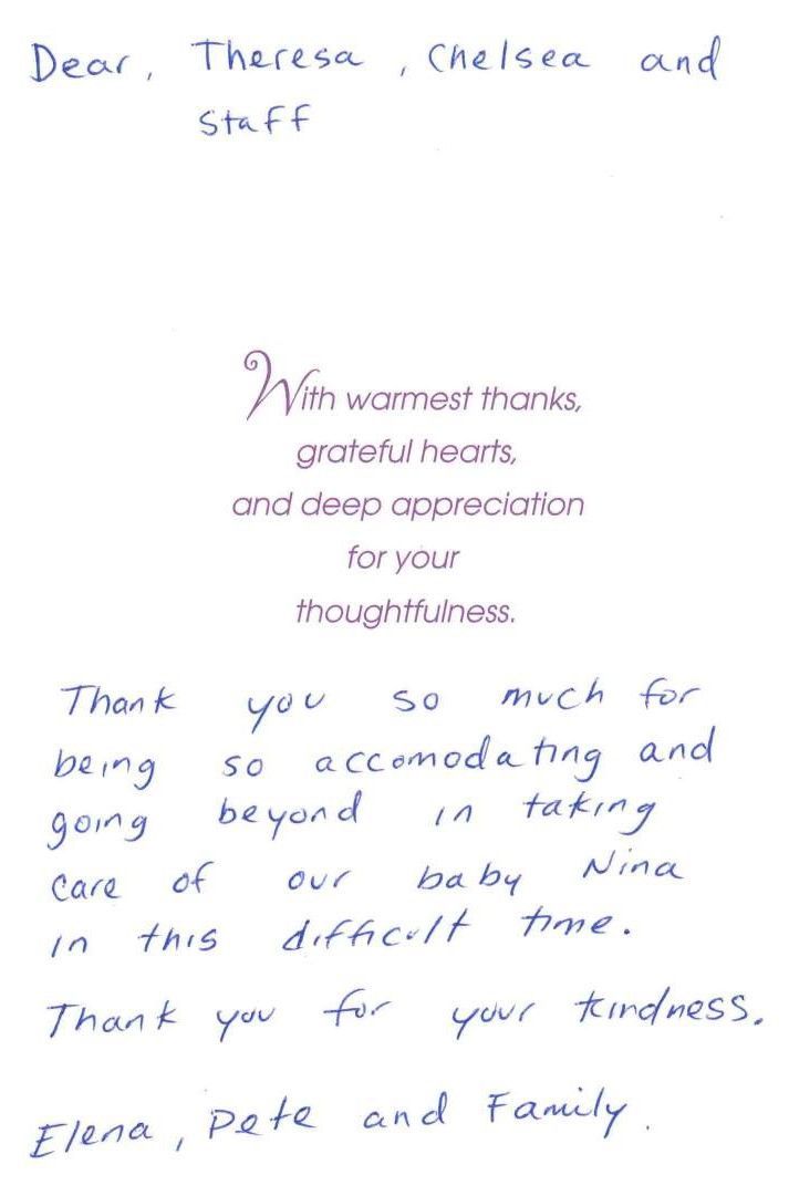 It is our greatest pleasure to hear from families we've served after the service is over. We receive many letters, cards and emails thanking us for our care and attention during their time of need and those words warm our hearts and affirm that we are truly here to serve.