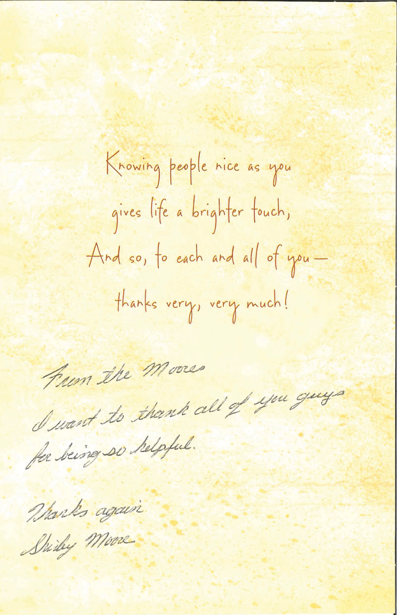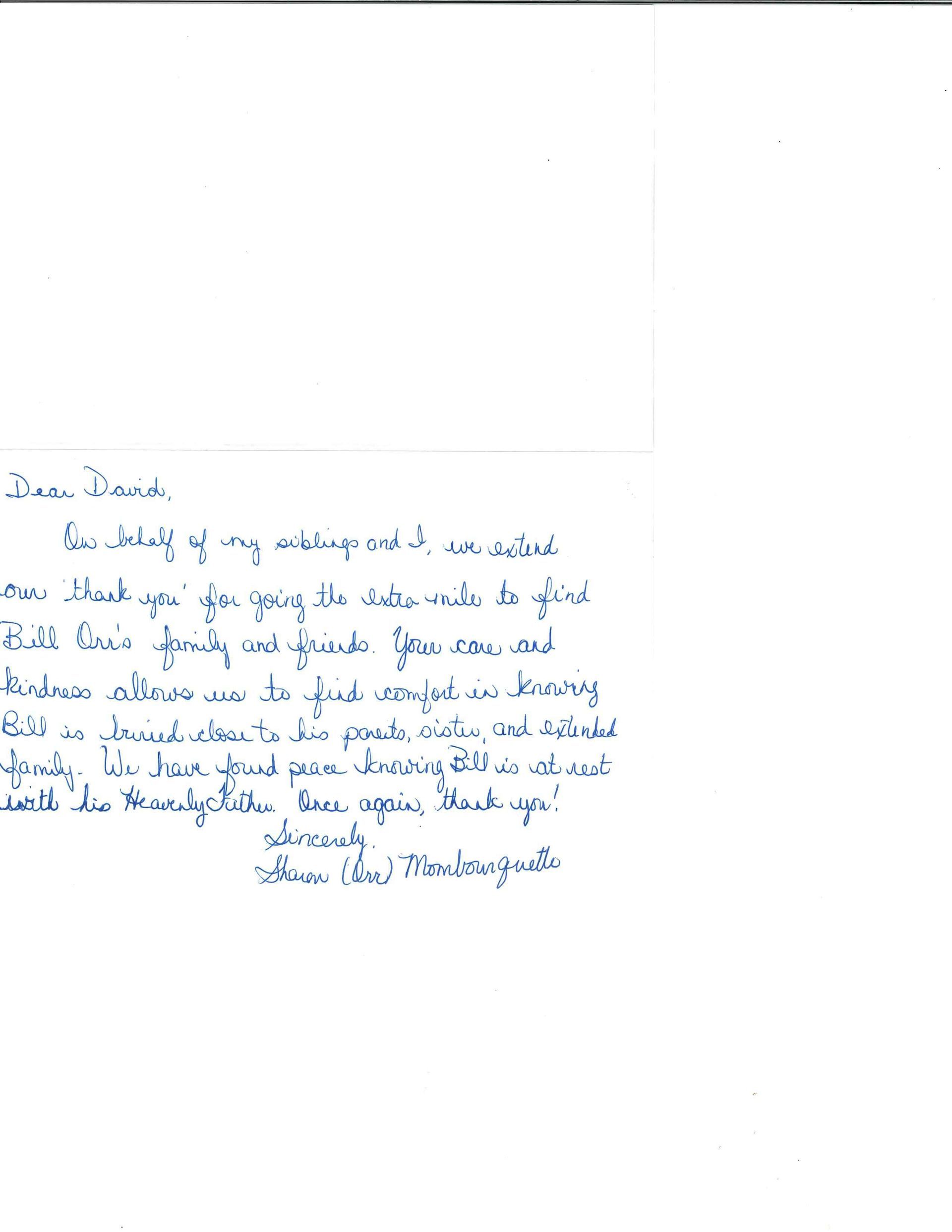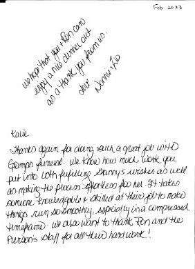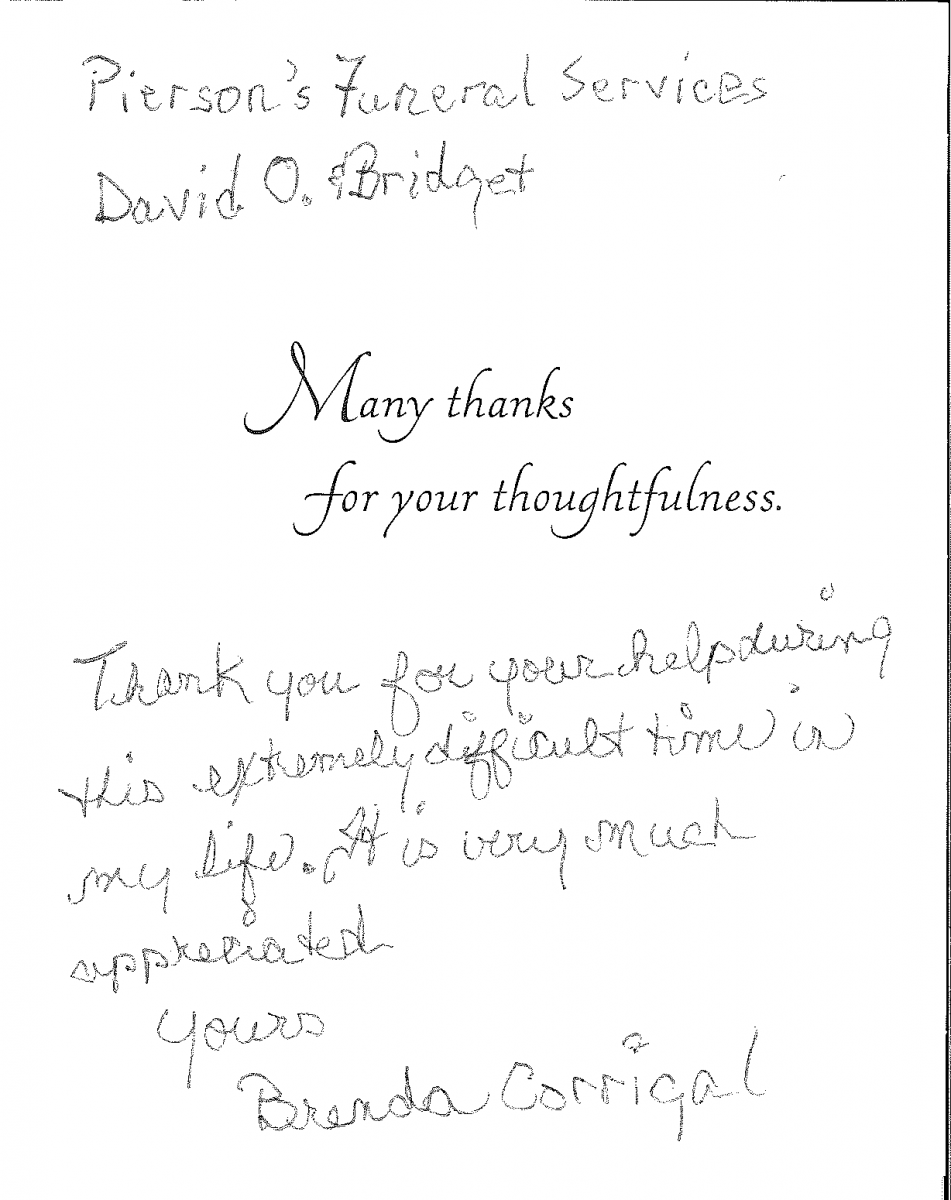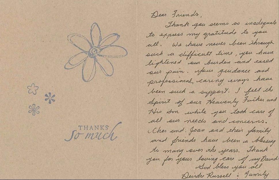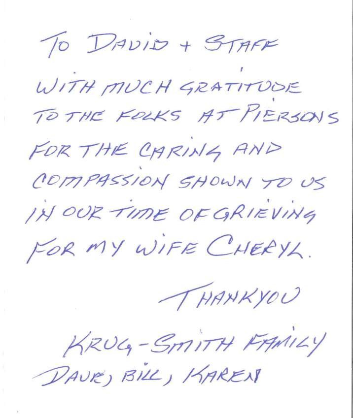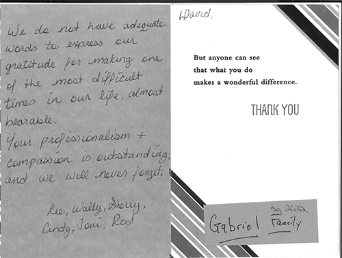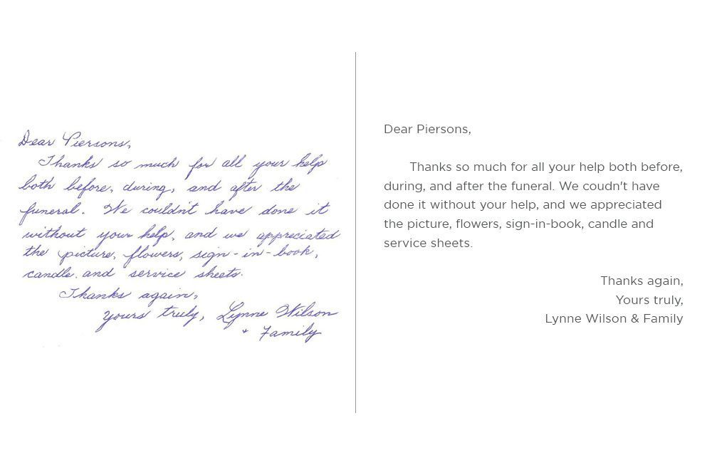 It is our greatest pleasure to hear from families we've served after the service is over. We receive many letters, cards and emails thanking us for our care and attention during their time of need and those words warm our hearts and affirm that we are truly here to serve.